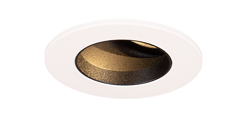 Duo fixed downlight with Ø60mm tapered black baffle and supplied with a separate installation kit with overlap flange for finished ceilings.