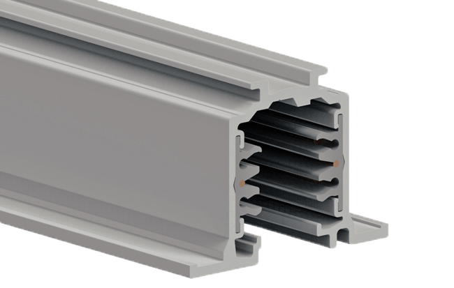 Mains Voltage lighting track system with integrated databus for all dimming protocols.